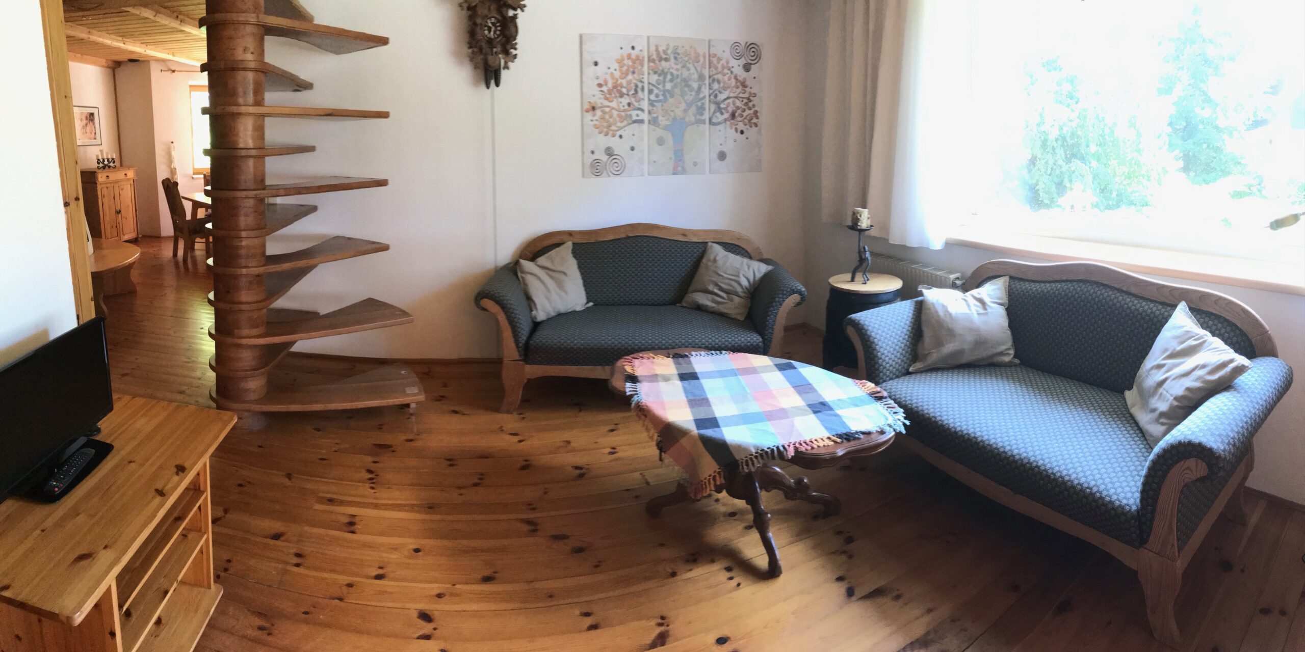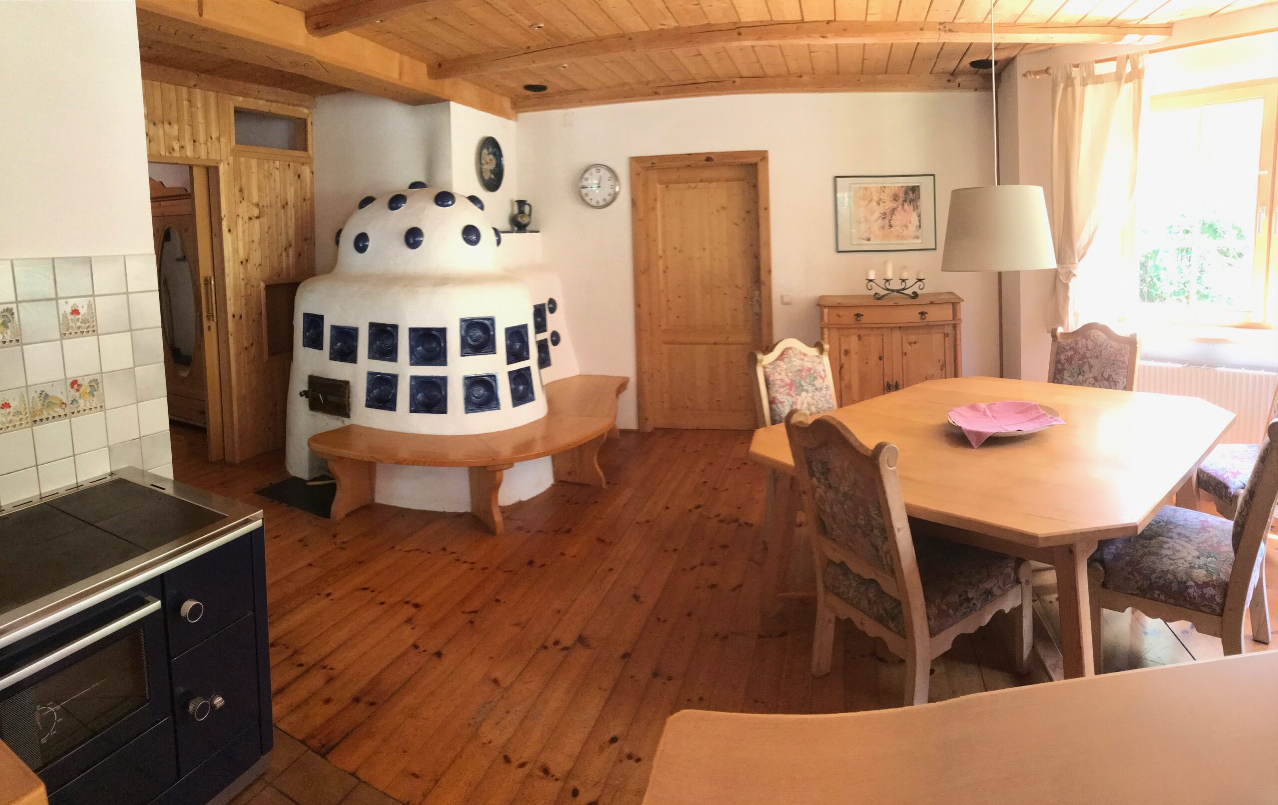 120 qm, max. 6 Personen, im Erdgeschoss, 2 Schlafzimmer mit Doppelbetten, 1 Schlafzimmer mit französischem DB, große Küche mit Wohnraum und Bad, WC separat, Gartenblick, Geschierspüler & Backofen